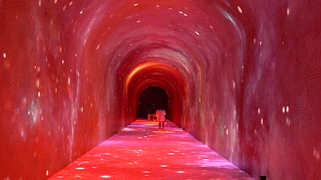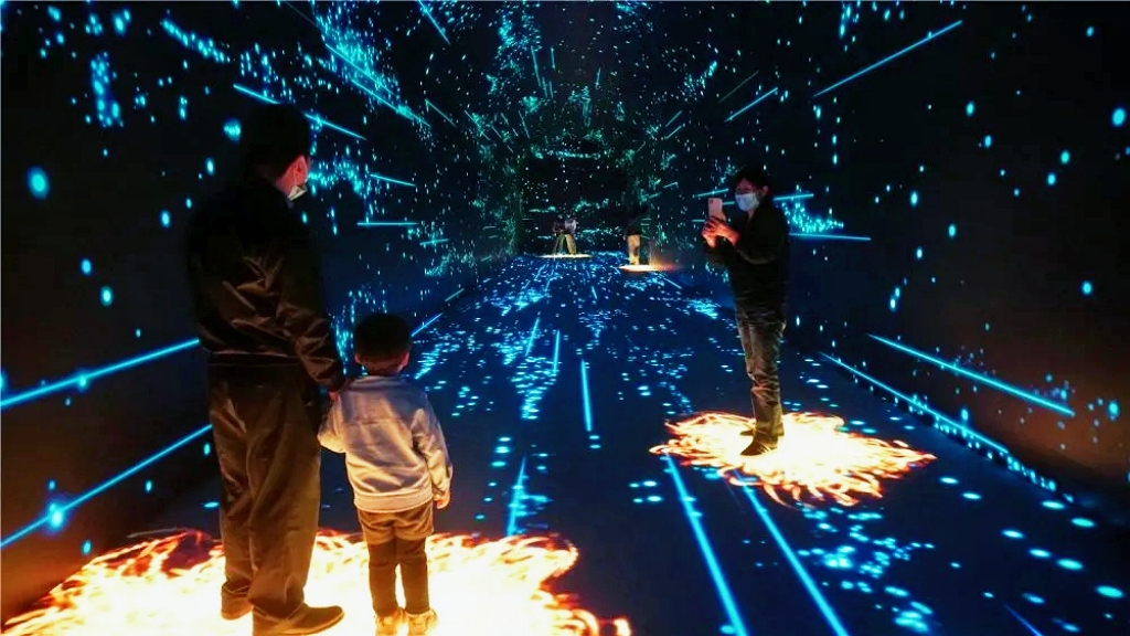 The Qiandao Lake-Time Tunnel is mainly composed of three major sections: the underwater ancient city, the Feiyue Qiandao Lake, and the Romance of Four Seasons. When visitors walk into the space-time tunnel, they are oncoming with a sense of shock and mystery brought by high technology. The underwater ancient city is 60 meters in length. It uses the cultural heritage of Qiandao Lake as a carrier to reproduce the splendor of the ancient city; the rippling water surface Next, it gives people a sense of being on the scene. In the second and third sections, the immersive experience is given through shocking sound effects, gorgeous pictures and wonderful interactions.