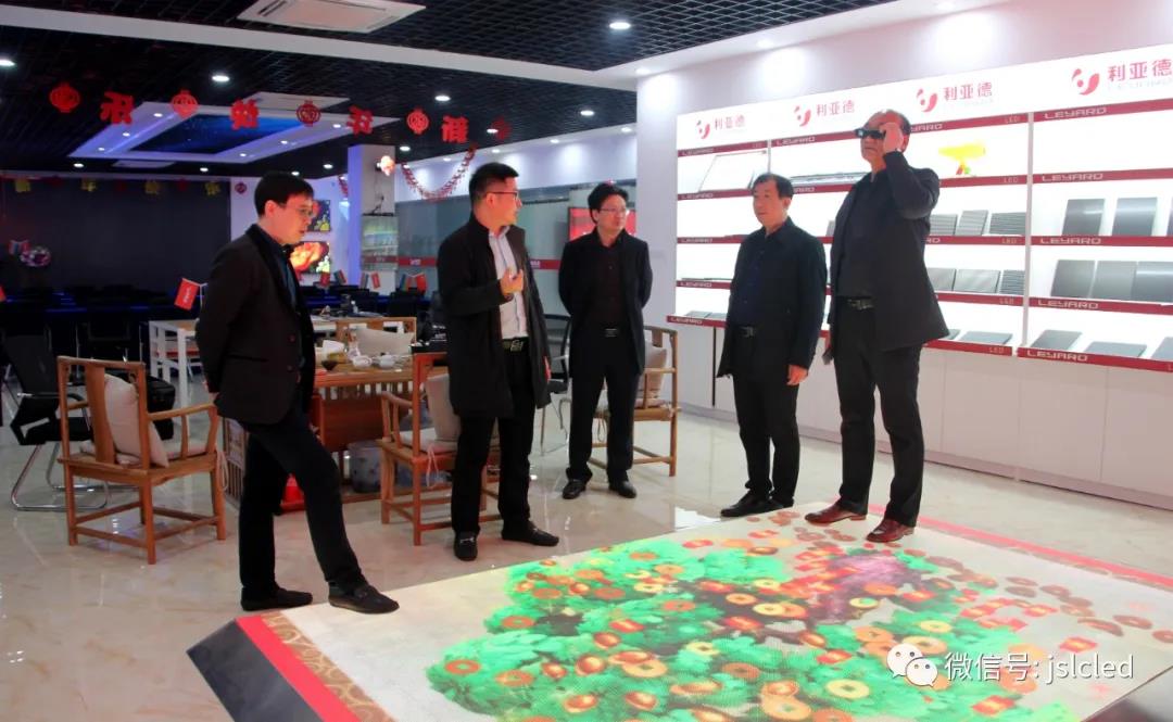 各領導一行首先來到利亞德(江蘇·常州)展廳參觀了LED顯示、照明產品,章總介紹了特色產品,如透明屏、城市景觀亮化、文旅、智慧城市建設(智慧燈桿)等,包含多類不同的應用場景。領導們親身體驗了3D顯示屏和地磚互動屏,對此贊賞有加 。